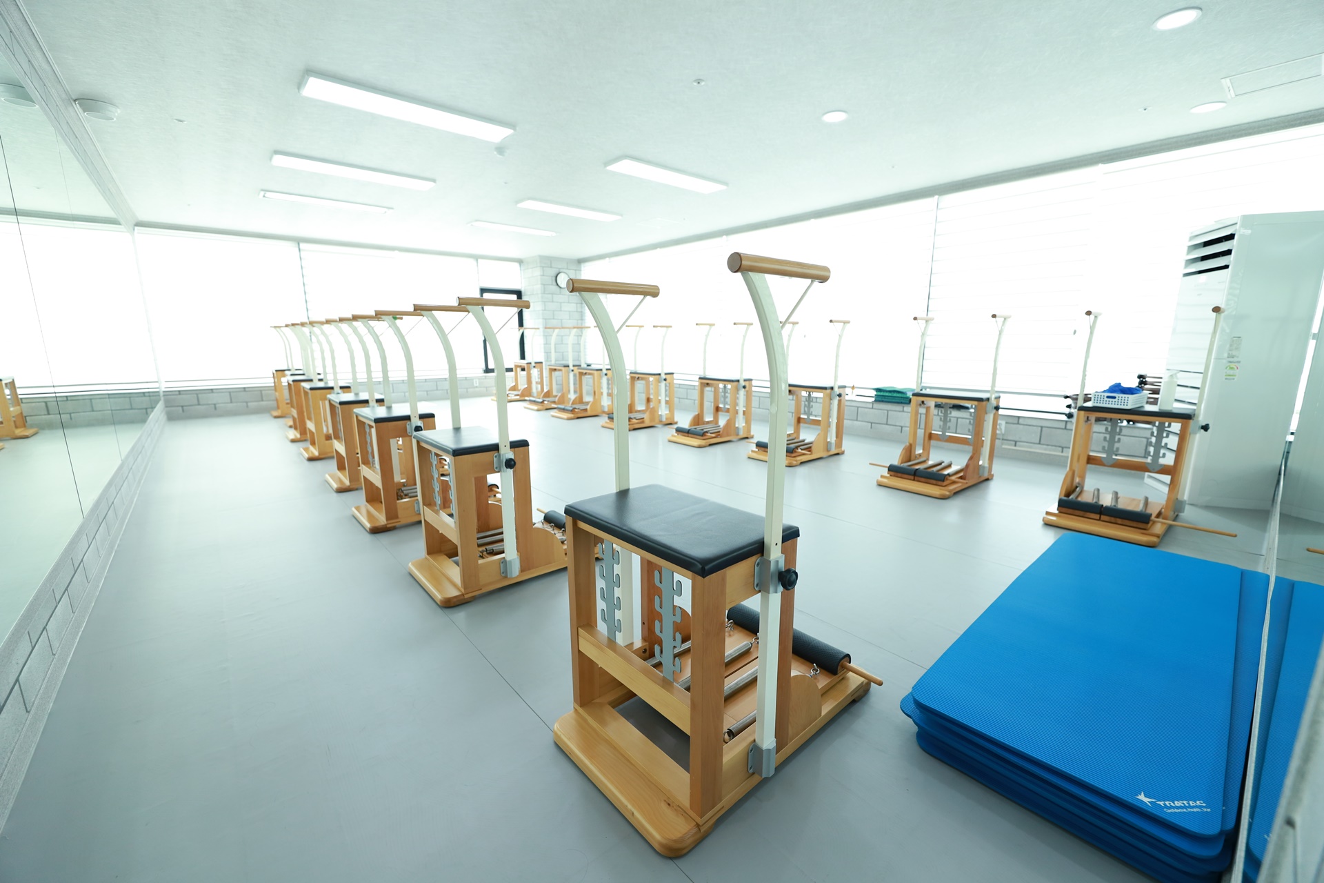 내쉬는 숨에 페달 위의 발목 높이를 유지하며 체어 시트 위 다리의 무릎을 펴면서 페달을 들어올린다. 마시는 숨에 체어 위의 다리 무릎을 구부리며 페달을 밀어내고 내려온다. 내쉬는 숨에 페달을 다시 들어올리고 마시며 내려오는 것을 반복한다.
