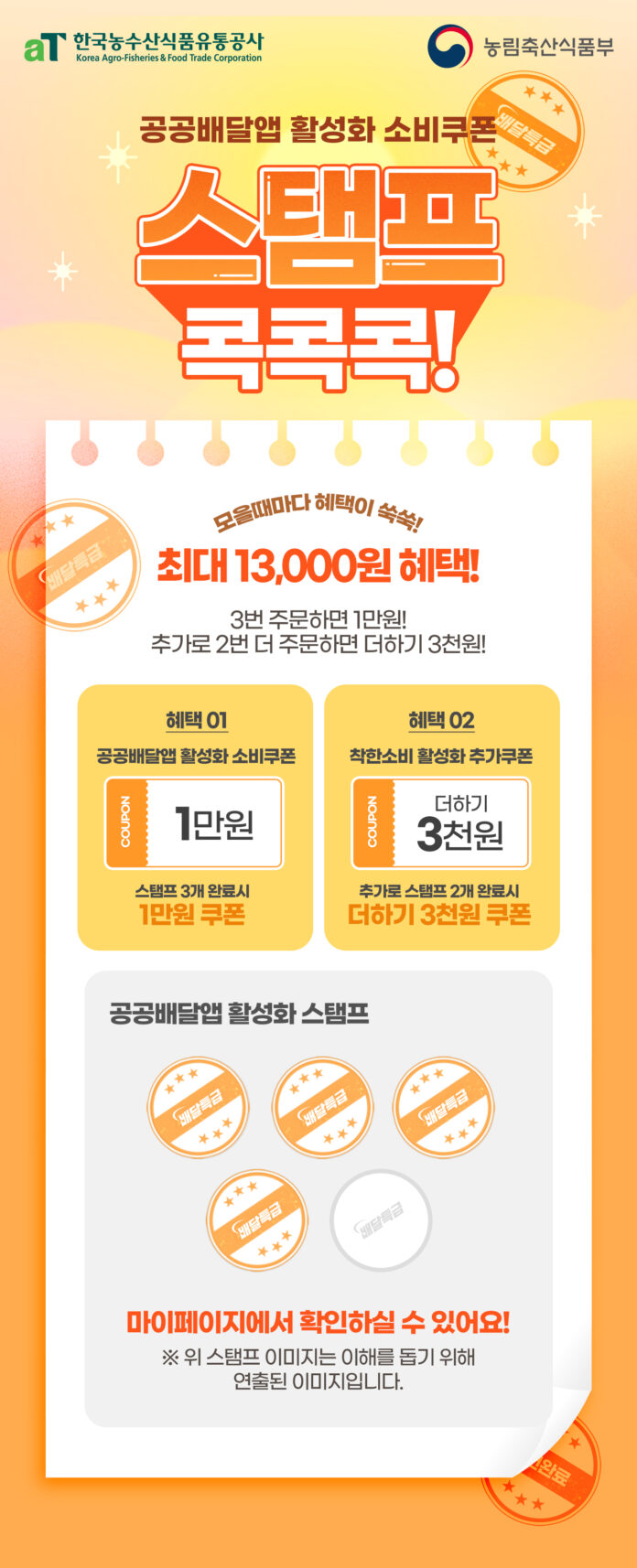 - – 공공배달앱으로 2만원 이상 3회 주문하면, 1만원 소비 쿠폰 제공