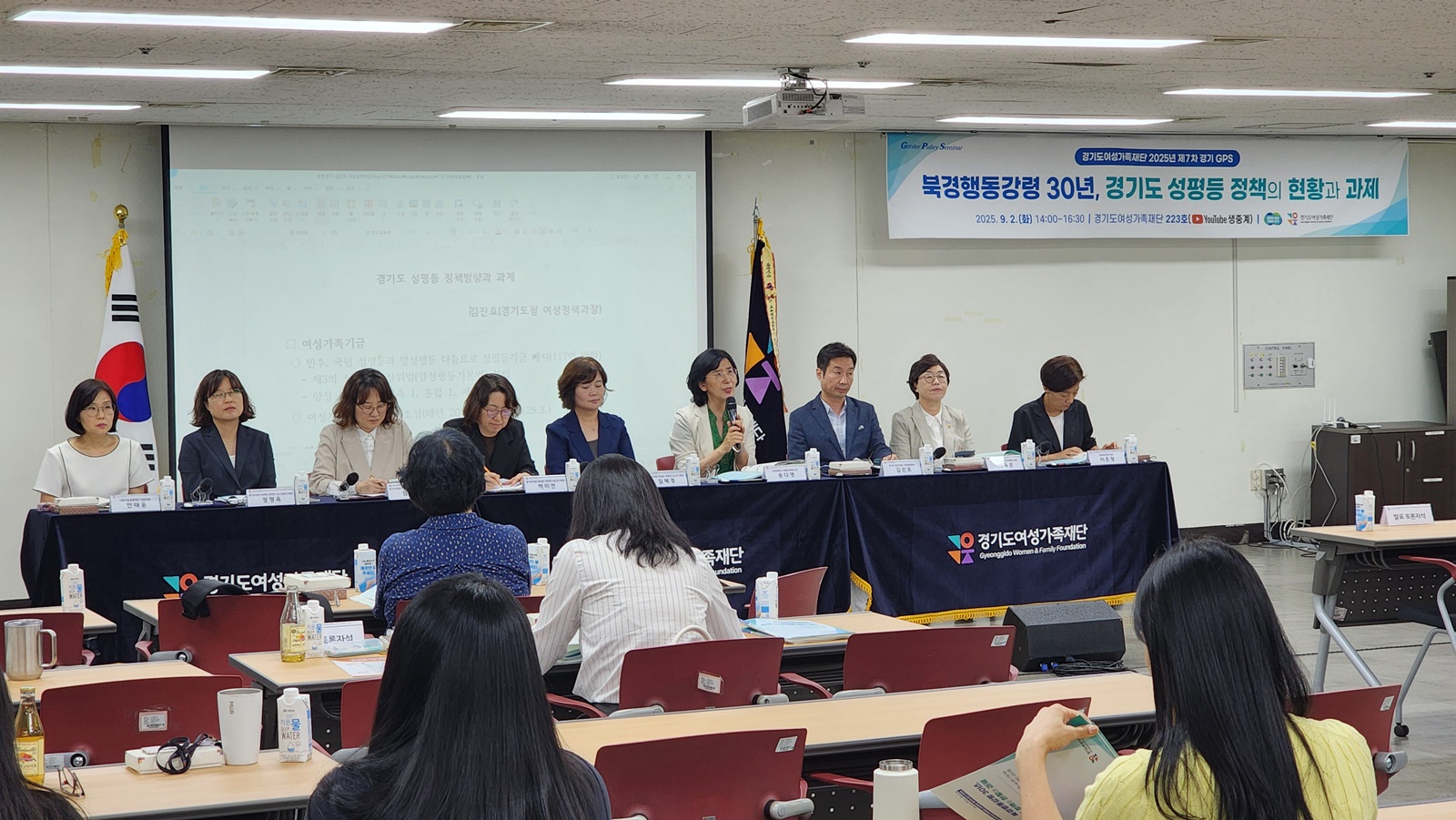 세미나에는 문형근 경기도의회 여성가족평생교육위원회 위원장과 황윤정 유엔여성기구 지식·파트너십센터 소장이 축사를 전했으며, 정영애 전 여성가족부 장관이 기조강연자로 참석했다.