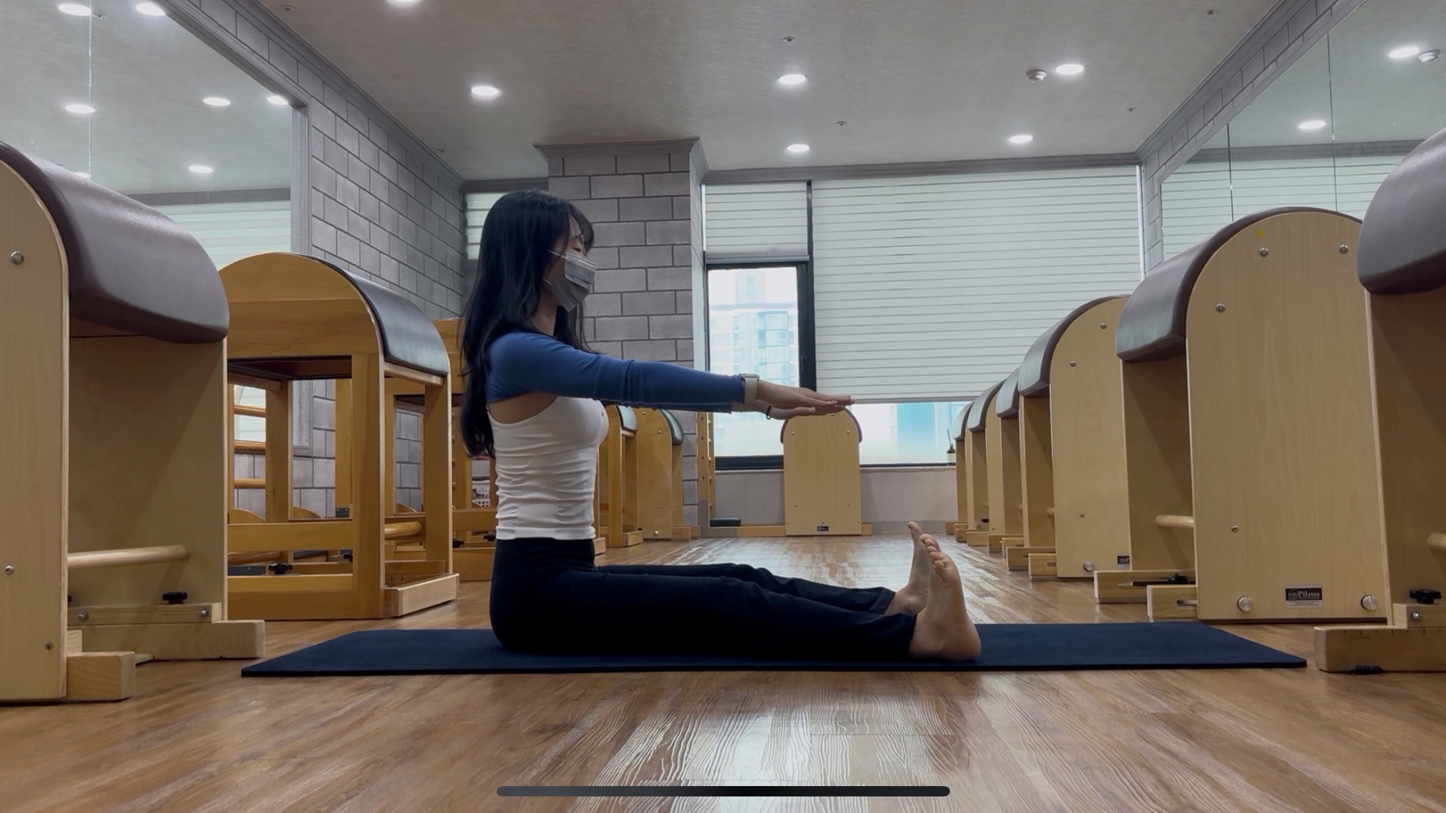 매트에서 진행하는 spine stretch forward는 복부의 강화와 함께 척추의 분절, 굴곡과 신전의 움직임을 만드는데 목적을 둔다.